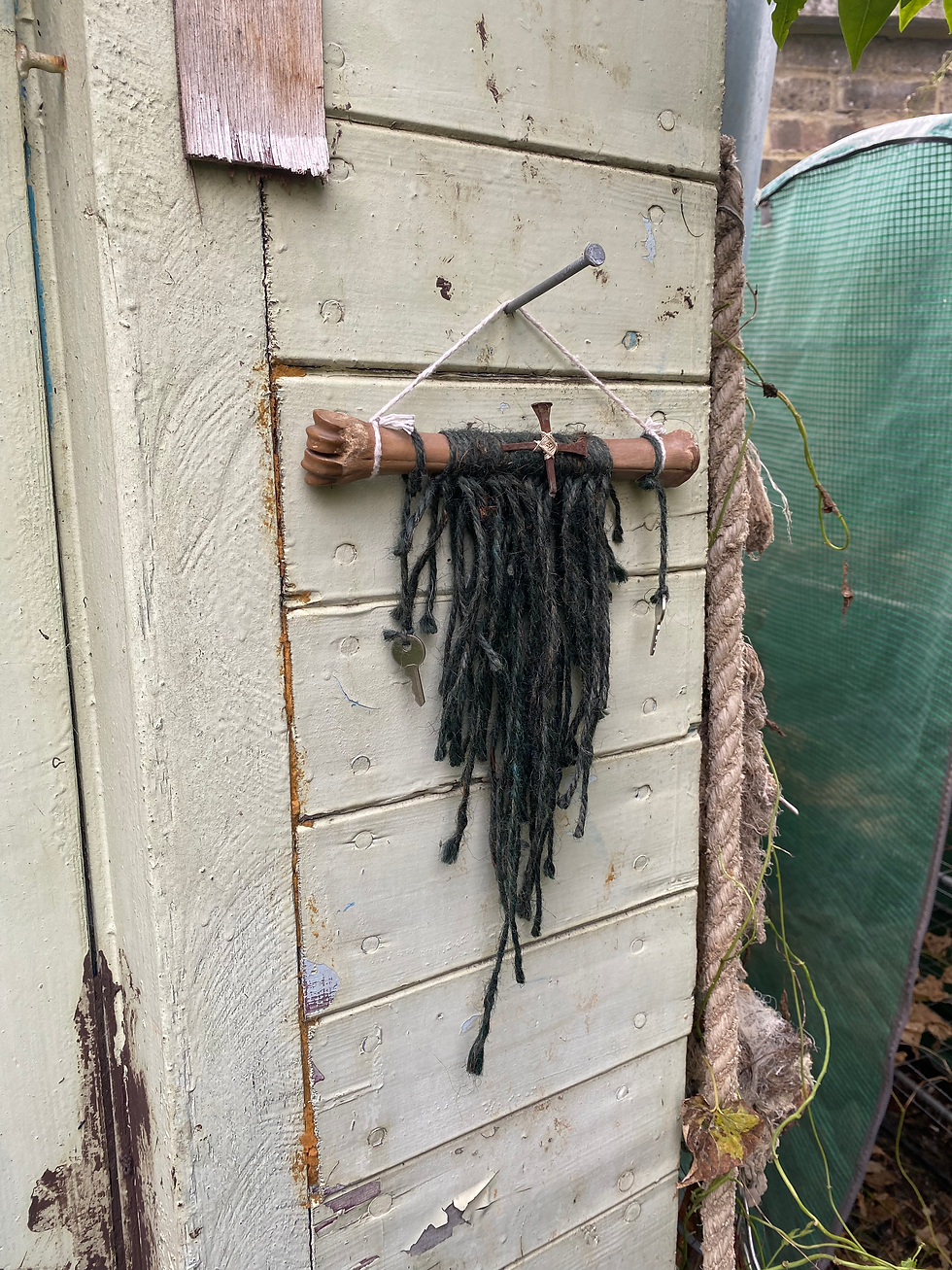 Horseshoe Nail Cross, Bone and Green Wool